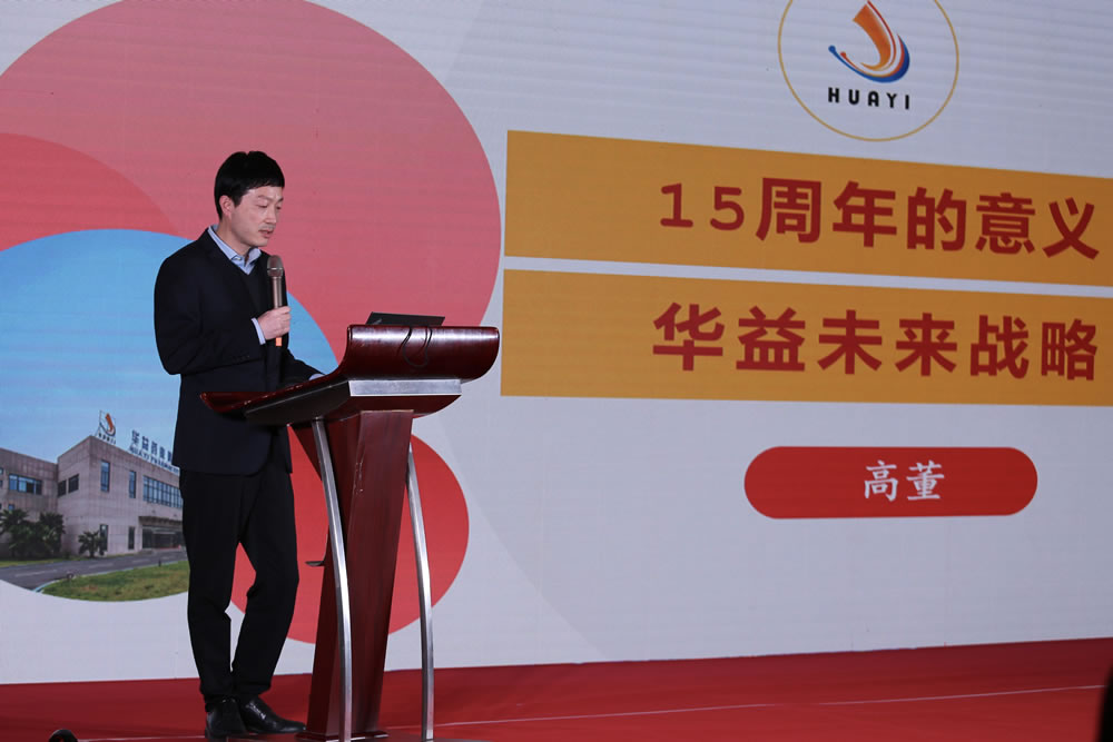 首先,董事長(zhǎng)兼總經(jīng)理高董如數(shù)家珍地講述著華益從成立之初、到今日耀眼的成就,慷慨激昂地介紹未來發(fā)展戰(zhàn)略。
